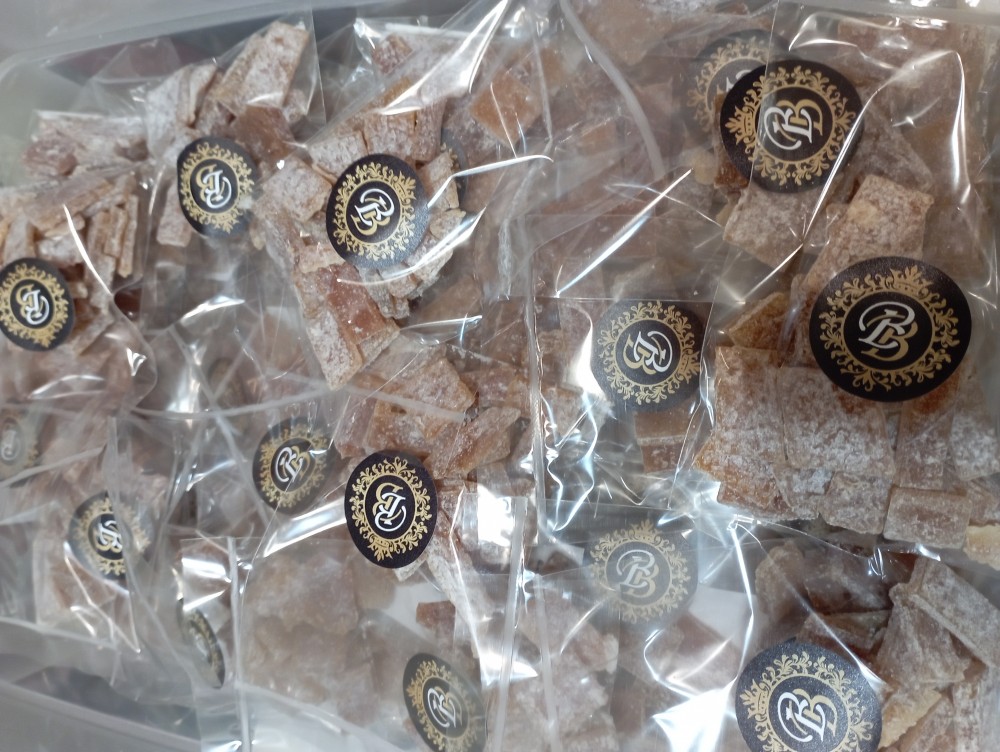 Aszalt alma lapok, melyeket kis kockákra szeltünk a könnyebb fogyaszthatóság érdekében.